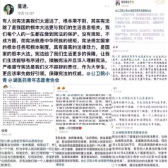 此次线上活动主要包括宪法宪读、宪悟宪感、宪问宪答和宪法“咏”流传四项内容。不同的活动带给同学们不同的体验。在宪法宪读活动中,大声朗诵宪法条文让同学们切身体会到了宪法的庄严与神圣。宪悟宪感以及宪法“咏”流传这两个活动又分别通过观看“宪法与我的一生”海报抒发感悟和唱出与法律有关歌曲的方式来让同学们进一步感受宪法。在宪问宪答的答题环节中,同学们都取得了优异的成绩,真正做到了让普法教育深入日常生活。