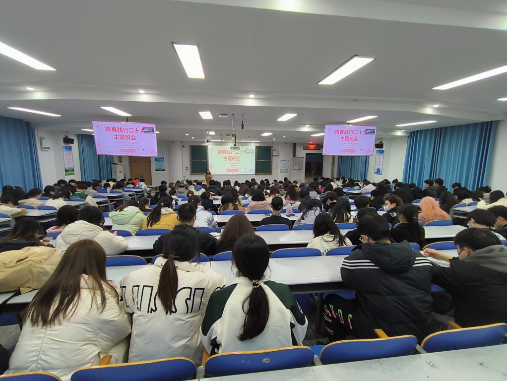 新学肇始,万象更新,为深入学习贯彻党的二十大精神,团结引领广大青年学子坚定不移听党话、跟党走,教育引导同学们坚定理想信念、涵养家国情怀、砥砺奋斗精神,更快、更好恢复学习状态、适应新学期的到来,2138cn太阳集团于2023年2月26日召开“青春践行二十大”主题班会。班会包括4301、4501、4601、5111和5112五个分会场,2138cn太阳集团分党委副书记牛佳参与班会,辅导员石中玉、韩慧、罗明杰、瞿培林和张雪主持本班会议,2020级、2021级、2022级全体本科生到场参会。