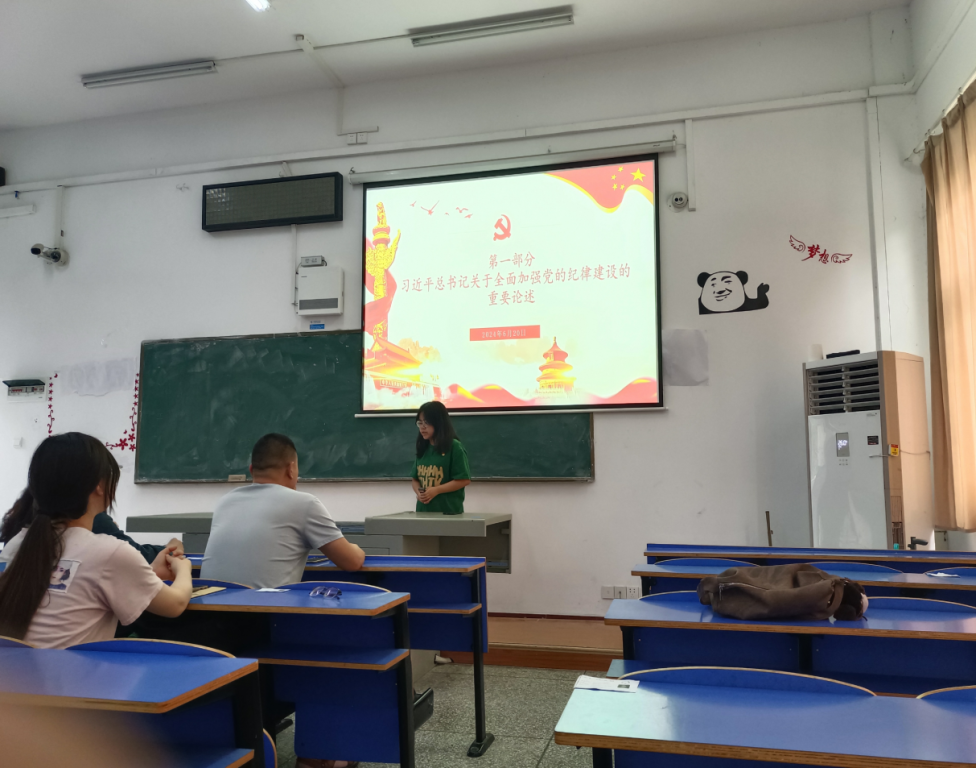 本网讯(通讯员 魏梦婕)2024年6月20日下午3点,2138cn太阳集团党委学生党支部于5116教室开展以“深化党纪学习教育,营造庆祝建党103周年浓厚氛围”为主题的主题党日活动。活动采取线上线下两种参与方式,由学生党支部季金月同志主持,辅导员赵连涛、石中玉、韩慧、王晶艳以及66名学生党员参加会议,本次会议应到66人,实到31人,请假35人,线上参会4人。