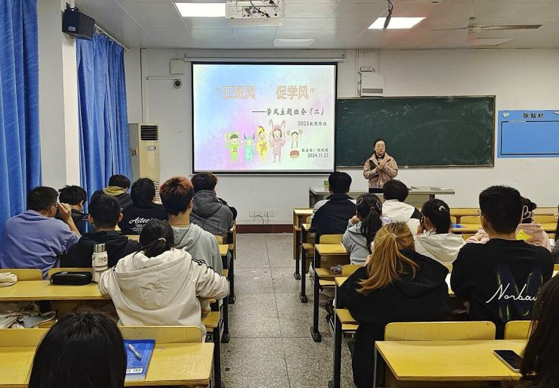 本网讯(通讯员 刘斌堰)11月22日下午,在5315教室举办了“正班风,促学风”主题班会,班会由班主任刘斌堰老师主持,2023级预防班全体同学参加。