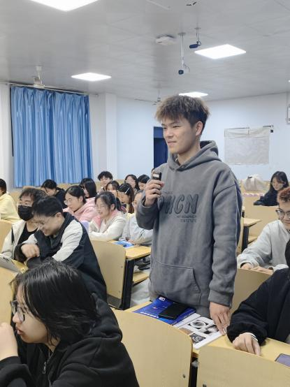 班集体的发展遵循木桶原理,一个木桶能盛多少水,取决于最短的那块木板。深度认知班集体的劣势,才能使得全班同学共同进步,提升整个组织的水平。刘斌堰老师从学霸寝室、学霸班级的实例入手,向同学们展示树立良好班风、营造浓厚学风的重要性。并请同学们反思自省,是否存在“事不关己、高高挂起”、盲目效仿、躺平心里——自我要求低、放纵自我——自制力差等方面的问题。通过提出“六先六后”和“复习五步曲”的学习方法鼓励、倡导全班同学正视学习态度,及时制定学习计划,打好基础,融会贯通。