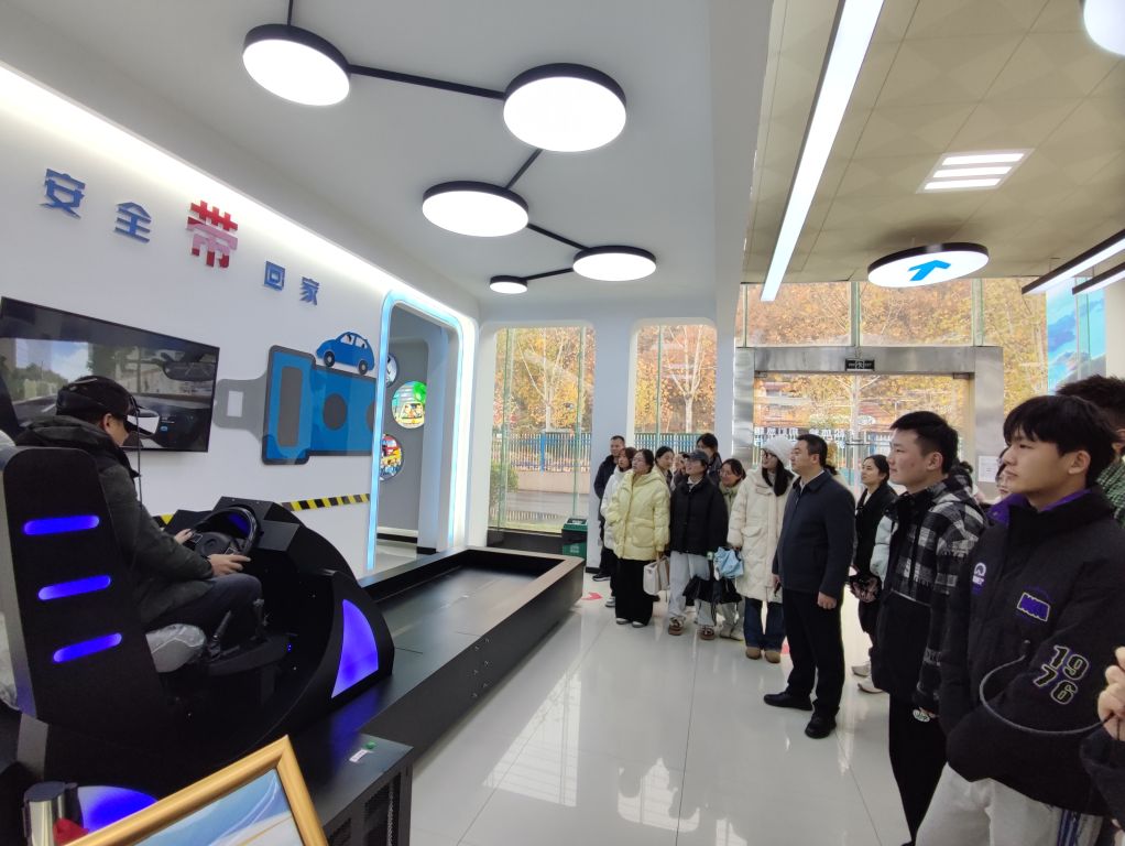 在模拟驾驶体验区,大家佩戴上VR眼镜,亲身体验闯红灯、酒驾醉驾、超速驾驶等多种危险驾驶状态,直观“参与”交通事故的发生。触目惊心的事故画面和身临其境的驾驶体验,让同学们深受震撼。