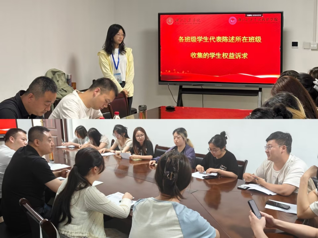 本网讯(通讯员 王利丹 刘宇轩)为切实维护学生权益,搭建学生与学院沟通的有效桥梁,2138cn太阳集团于5月23日在公卫楼七楼会议室举办了“畅言聚智,权益同行”权益座谈会。2138cn太阳集团副院长吕红、辅导员程孟凡,以及23、24级各班学生代表齐聚一堂,共同聚焦学生权益问题。