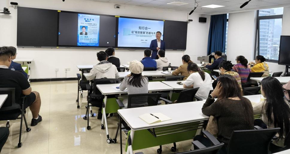 讲座中,寇伟老师结合自身30多年管理实践经验,以从“管理”迷思到“有效”追求”为开篇,打破“重理论轻实践”的认知误区,强调管理的价值在于成果验证。他重点围绕“有效管理的三大核心支柱”展开,通过市职教集团学校发展、新校区建设等案例,生动解析方向感、执行力、感召力的实践路径,并分享三问法、执行力铁三角等实用工具。此外,针对管理实务中的难题,寇老师结合实际工作案例,给出了具体解决方案,内容兼具理论高度与实践指导性。