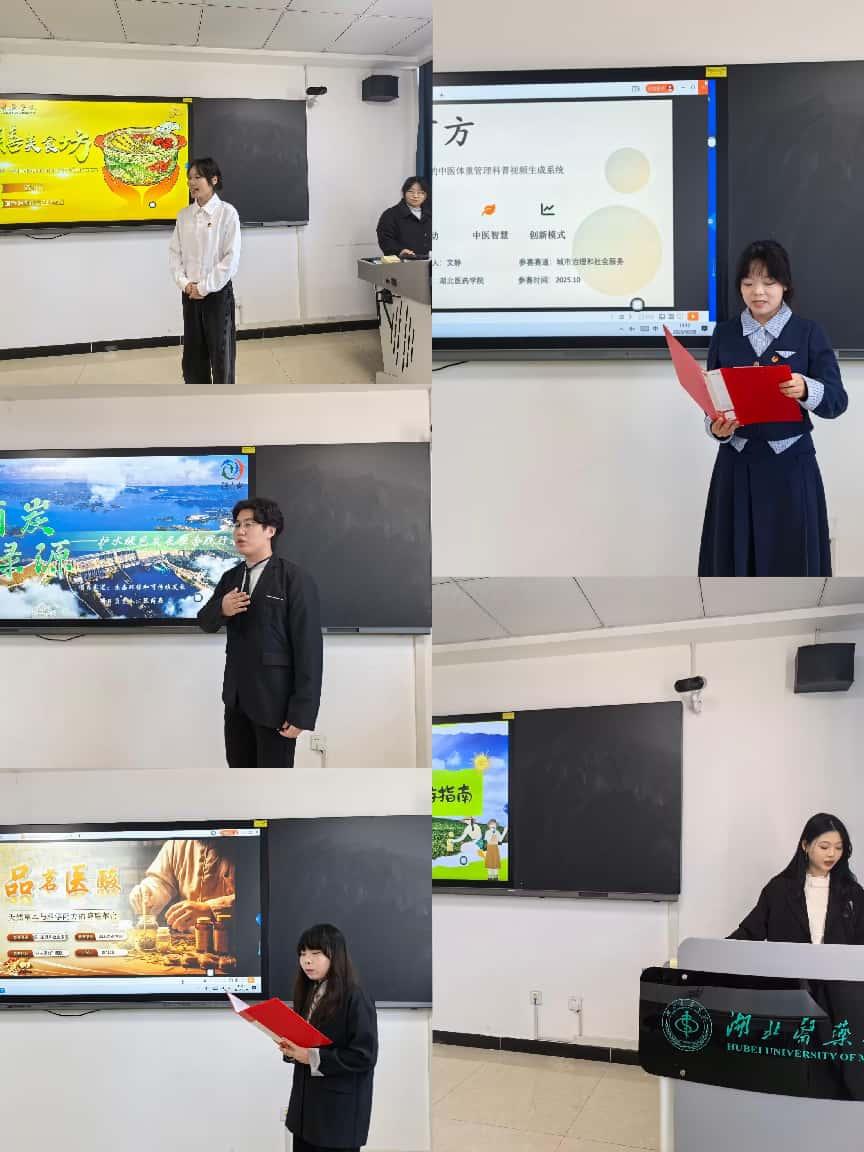 答辩伊始,主持人宣讲本次答辩议程规则及事项,明确答辩评选的公平性。随后,臻膳美食坊、菌炭绿源、心言蜗、品茗医酸、智膳有方、“itinerary:旅游指南”6个参赛大创团队分别通过项目陈述,PPT展示及现场答辩等多个方面,全方位展示展现各自项目的创新性、可行性与社会价值,充分展现出公卫院学子以青年之风采,展科创之未来的昂扬姿态。