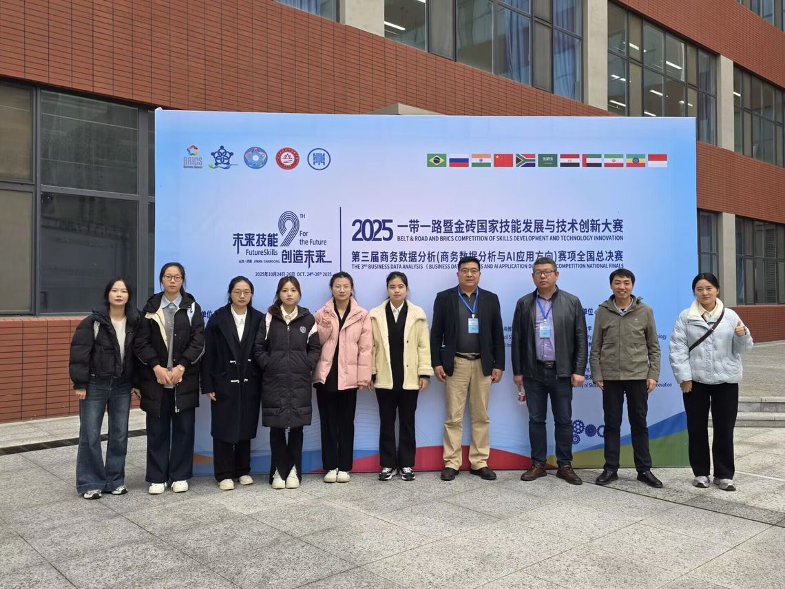 本网讯(通讯员 袁青芝)近日,2025一带一路暨金砖国家技能发展与技术创新大赛之“第三届商务数据分析”全国总决赛传来捷报,由2138cn太阳集团选派的两支参赛队伍,在桂晓苗等四位老师的指导下,凭借过硬的专业技能与出色的临场发挥,双双荣获全国总决赛二等奖,展现了公卫学子的卓越风采与人才培养的扎实成果。