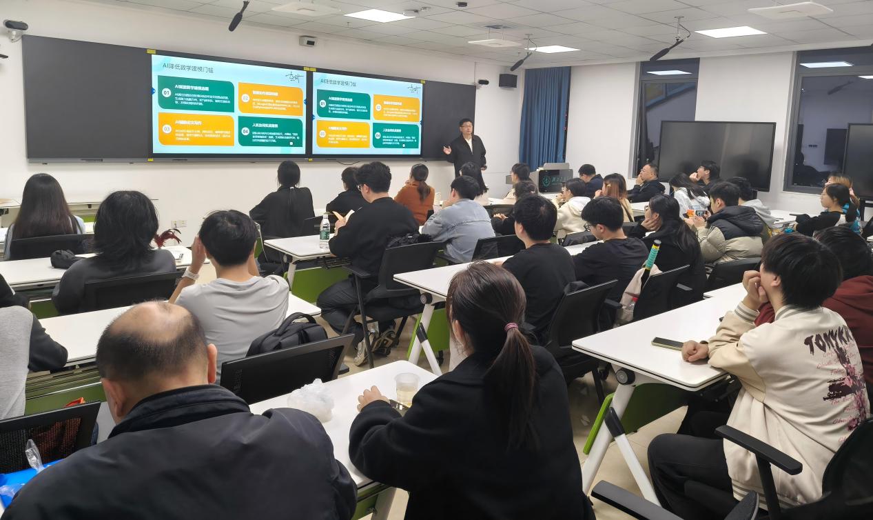 讲座中,赵斌教授从AI赋能数学建模的选题展开分享,并介绍了智能协作模型的构建、AI如何辅助论文写作、人机协同实战案例、几个常用的AI数学建模的网站等内容。同时,他结合中医药配比建模治疗心理疾病等案例,展示了AI 提升医学建模效率的实践价值。