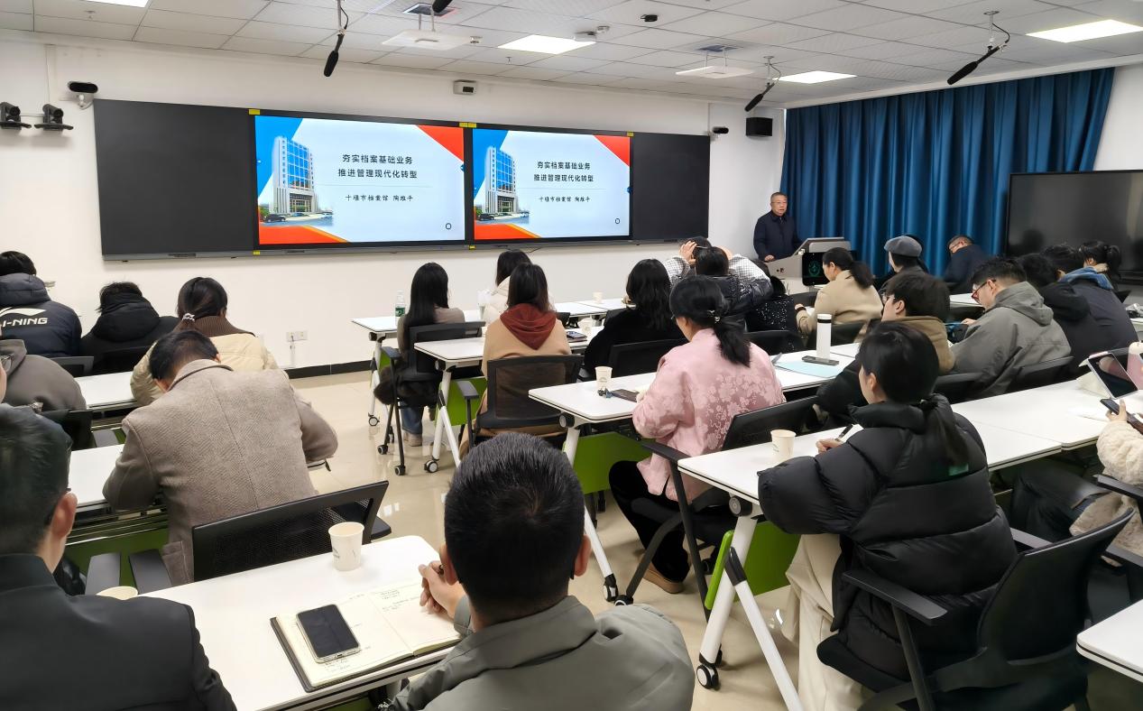本网讯(通讯员 薛硕)12月15日下午,十堰市档案馆二级调研员陶维平应邀来到2138cn太阳集团,开展题为“夯实档案基础业务 推进管理现代化转型”的专题讲座。讲座由学院院长邓平基主持,我校档案馆工作人员、图书情报专业研究生及部分专任教师共40余人参加。